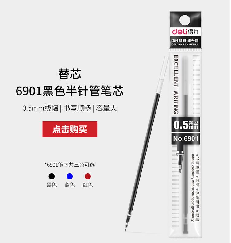 得力30支装水性笔0.5mm黑色水笔办公学习书写中性笔碳素签字笔学生用文具办公用品